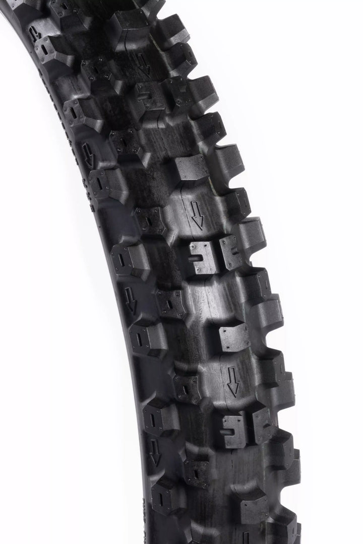 El nuevo neumático de competencia Terrapactor MXS (MX Soft) es nuestra oferta más innovadora para la conducción de terreno suave, específicamente adaptada para tierra blanda, pistas mixtas de barro/seco MX. El Terrapactor MXS cuenta con una construcción liviana. Objetivo principal para proporcionar un rendimiento excepcional en los terrenos blandos. El MXS presenta un patrón grueso y abierto diseñado para prevenir la acumulación y mantener limpio el tratamiento junto con garantizar un agarre firme incluso en condiciones pegajosas. To enhance the Tyre's flexibility and grip, we have integrated cutting-ed Treat flex zones within the tyre's carcass and knobs., Application-MX, Soft Terrain (Soft soil, mixed mud/dry), Two Front and the TRACK AND 100-21 for Traditional Feel Tell Taller Profile for Increased Contact Patch and Better Feel and Feedback Through Hard Edged Ruts, All New Mx Compound For Improved Longevity and Durability, Light Weight Carcass, Flex Zones Incorated Into Carcón para mejorar el agarre de las curvas y la extracción de la conducción de la sensación y el agarre de las curvas y el acerio