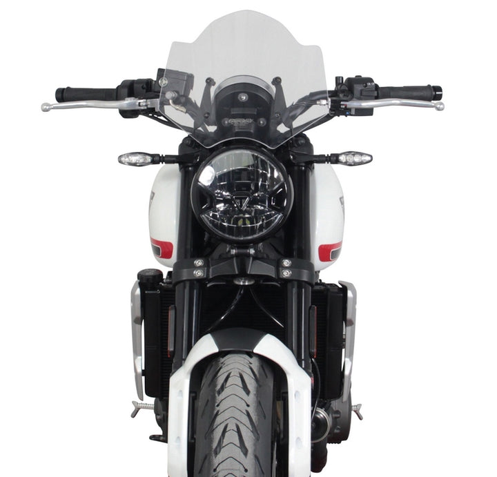 Este parabrisas está especialmente adaptado para Tridente, una motocicleta que combina elementos modernos y clásicos. Gracias a eso Redondeo redondo más bajo Se adapta perfectamente a los faros redondos y da un aspecto elegante y uniforme.