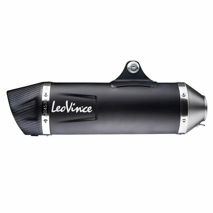 Nero se une al lado oscuro, estilo agresivo y líneas afiladas. Leovince Nero es el nuevo silenciador para motocicletas y maxi-socooters con un aspecto oscuro y moderno, el resultado de la constante investigación de Leovince de aceros de calidad y procesos exclusivos. Cap, pintura negra a base de cerámica metálica, acabado mate, logotipo de láser grabado de leovince