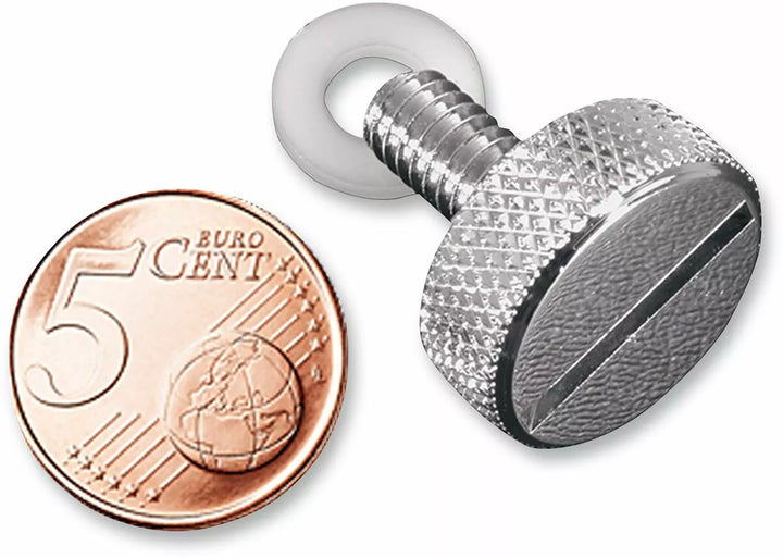 Construcción de acero de una pieza cromada, la ranura radiada ancha y amplia acepta un destornillador de cuarto o plano, nudoso de diamante elevado en el borde, 1/8 "más largo para una instalación de asiento más fácil con bolsas de silla de montar