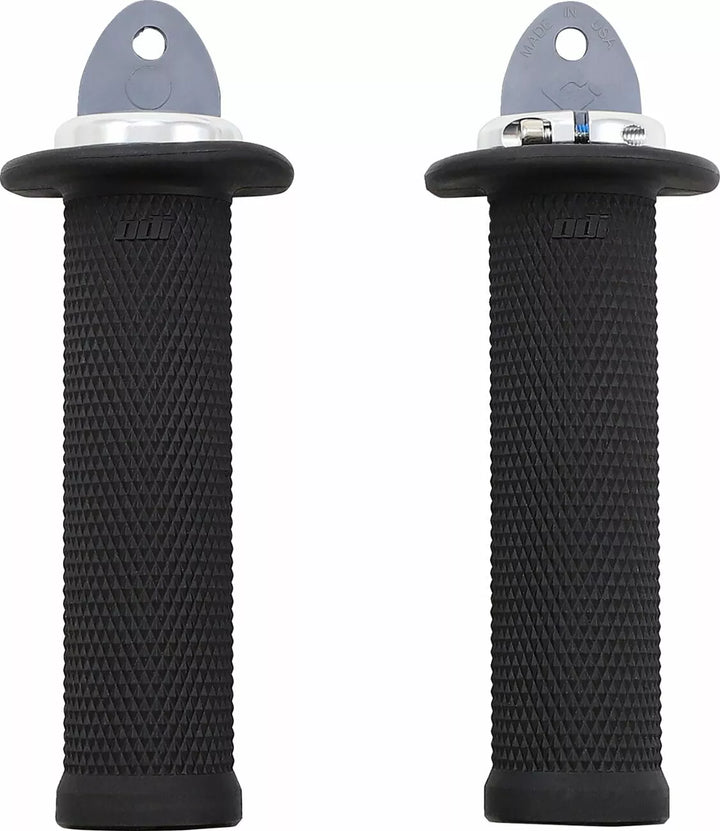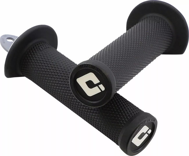 Grip de bajo perfil de control excepcional diseñado específicamente para las carreras, el patrón de diamondizado completo proporciona un perfil delgado y excelente tracción, exclusiva 3/4 de diseño de brida de brida protege las manos y permite el acceso al thorgia de pulgar, el primer pase moldeado para el primer pase de ODI V2.1 con cierres de jaw de bloqueo con tornillos, tornillos de bloqueo de bloqueo de bloqueo patido.