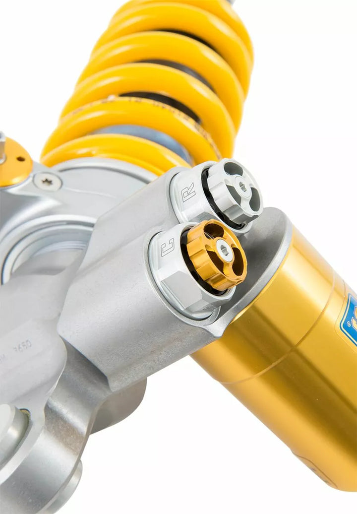 �hlins Twin-Tube Shock Technology, Features Needle Profiles for Compression and Rebound Adjusters, Updated Design Results in Improved Oil Flow Guidance and Volume Control for More Precise, Consistent Damping and Better Fine-Tuning, Availoable Range of PRELOAD are completely separated within the shock with no risk of cavitation, completely separate compression and rebound settings, 36 mm shock primary piston redesigned for improved performance for better traction and feel, Industry Standard of Minimized Varianza de chasis feck-shock, control de improvisación