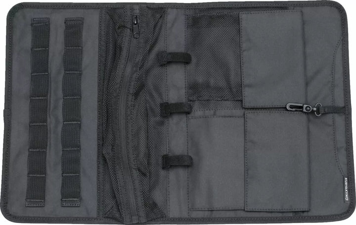 Montaje seguro con atachamientos de pestaña Snap montado en la tapa y sujetadores de gancho y bucle, incluye un organizador de tapa y un kit de bolsa de herramientas de integración molle de molle separado, tres bolsillos de almacenamiento separados para una organización óptima, organizador también integrado, resistente a la humedad duradera y poliéster de 1200 negadores tratados con la humedad y tratados con la humedad.