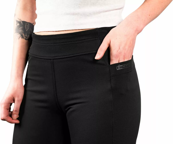 Icon® Women's Sport Fit, tirón de estilo de pierna en pantalones elásticos, chasis elástica de 4 vías, cremalleras de pantorrilla, adornos reflectantes