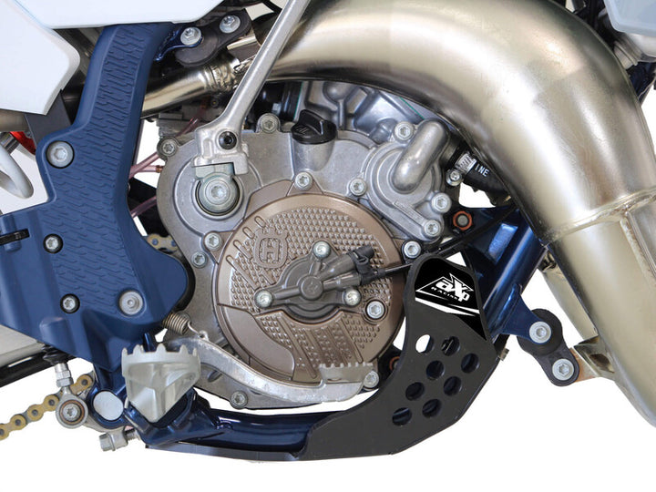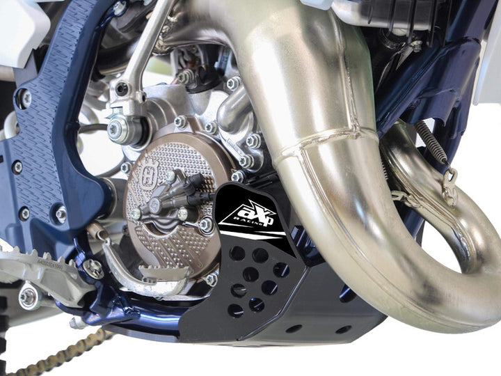 Hecho de plástico de polietileno de 6 mm de espesor, la placa de skid cubre la subtrama y protege el motor y las cajas de las proyecciones.