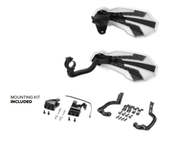 El puerto de policía presenta una nueva generación de guardamanos con el modelo de flujo MX. ¿Este guardamanos estilo MX cuenta con 2 sistemas de montaje? Un sistema de montaje de hígado para marcas y modelos específicos con un ajuste perfecto y un sistema de montaje universal, al manillar. Ambos están incluidos en la caja.