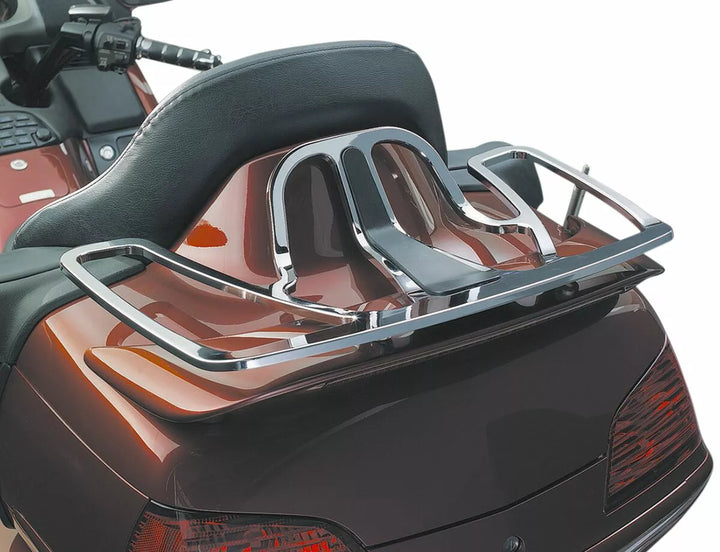 Todo el hardware de montaje necesario incluido, construido a partir de aluminio fundido duradero, el diseño contorneado se combina perfectamente con la forma de los troncos de gira GL1800, presenta un inserto de goma sinlips que ayuda a mantener su planta baja, ver productos relacionados con