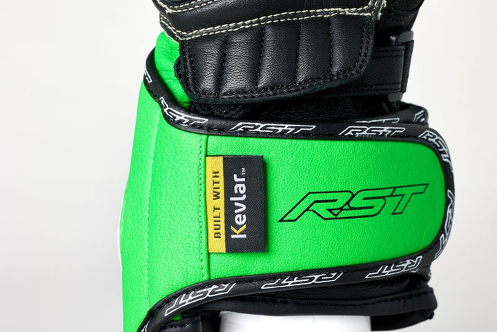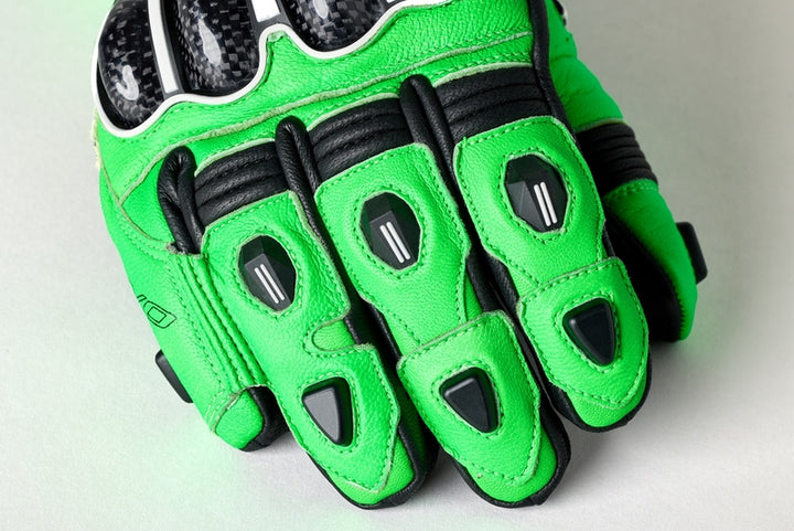 Hecho con cuero de vaca de grano completo y cuero de canguro, el guante presenta un protector de nudillos de carbono de nivel 1 CE para protección de impacto. La fibra de aramide en las costuras de la palma y la base, junto con el cuero de canguro de doble capa y un primer control deslizante de palma protegen la palma en caso de un portaobjetos de alta velocidad, mientras que el cierre doble de muñeca y manguito ofrece un ajuste seguro. El revestimiento de aramida DuPont ™ en todo el resto del guante evita el desgarro, y los dedos elásticos unidos para evitar el "rollo de dedos" sin afectar el alcance o la flexibilidad al cambiar de marcha.