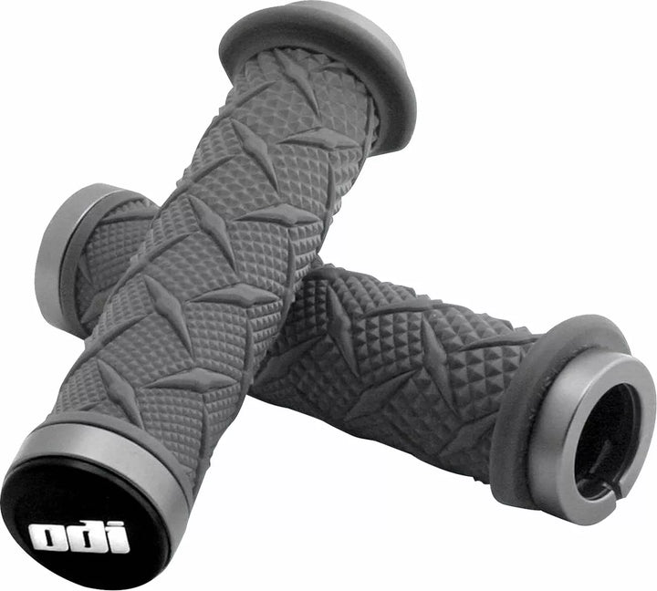La máxima tracción y control en cualquier condición, diseñada para proporcionar una superficie de agarre más consistente en las condiciones más importantes, las estrías agresivas de patrón de diamantes para una sensación más ergonómica, las víctimas de placas de diamantes agregadas de la ley más control, 130 mm de longitud; 3/4 brida, complementos de extremo Snap Cap ™ incluidos, para usar con gatillo/thotles, hechos en los EE. UU.