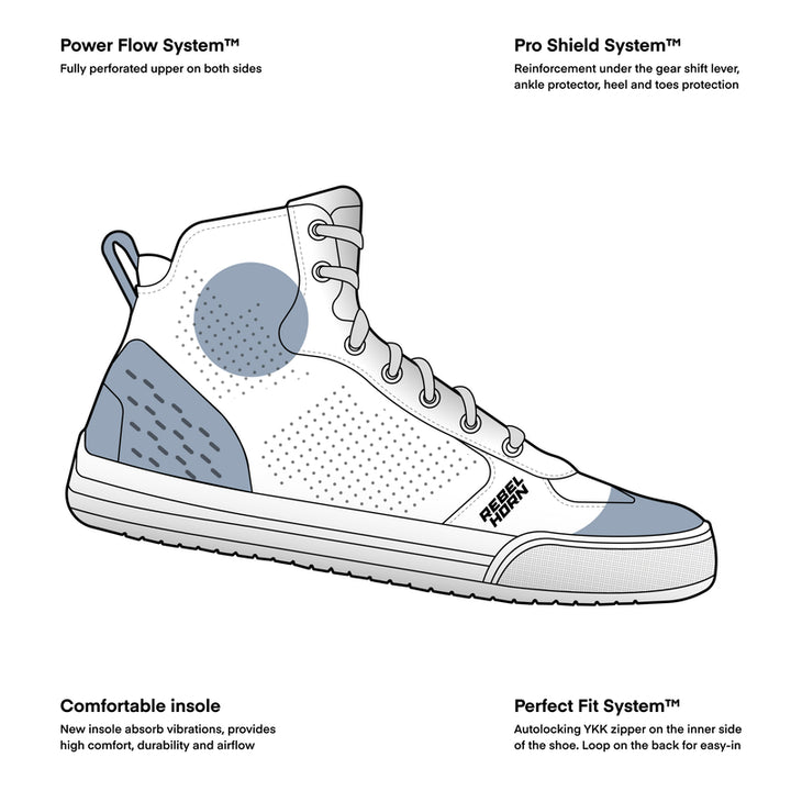 Rebelde Espiga es zapatos de motocicleta elegantes y funcionales, creado para conducir en la ciudad y uso diario. Estos zapatos se combinan Seguridad, comodidad y estilo y son perfectos para los conductores que quieren un Apariencia casual sin comprometer el refugio.