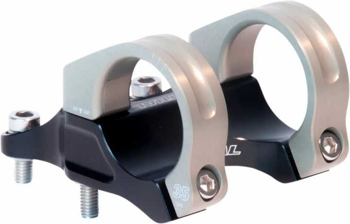 El tallo combina alta resistencia con un peso ultra bajo; The Use of Two Independent, C-Shaped Handlebar Clamps Allows The Stem Body Material To Be Reduced to A Minimum, Whilst Mainting An Incredible Stiff and Strong Structure, CNC Machined 6082 Aluminum Aluminum Body 7075 Aluminum Clamps 6-Bolt Design, U-Shape Cradle Clamp Eliminates Handlebar Stress Raisers Found With Traditional Stems, Ultra-Wide 64 mm Clamp Width