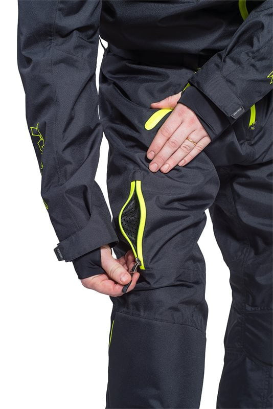 Para desahogarse aún más, el overol está equipado con seis aberturas de ventilación que cuando están cerradas son impermeables, que todas las prendas son cremalleras.