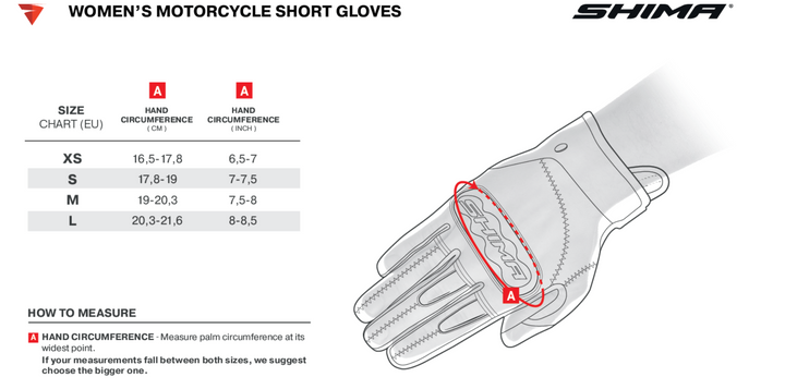 Buscando un par de guantes MC que se combinen estilo, comodidad y seguridad - sin comprometer? Entonces Shima Monaco 2.0 algo para ti. Estos elegantes guantes de mujeres cortos en cuero natural están hechos para mujeres que quieren rendimiento y una expresión sofisticada, dentro y fuera del montículo.