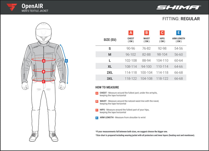 Shima OpenAir contiene protección de hombro y codo en un nivel estándar que corresponde a los requisitos de la UE y un nivel de CE de protección posterior 2. Los protectores están diseñados en un panal de doble capa especial. Proporcionan protección confiable y respiran. En una colisión, las protecciones curan y absorben la potencia máxima de choque.