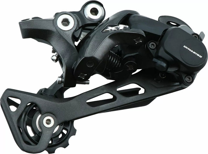 Shimano Dear XT - trasero trasero - Medium Cage - Shimano Shadow Rd+ - 11 -Speed., Perfectamente adecuado para una amplia variedad de aplicaciones MTB, el Shimano Deore XT M8000 Derailleur entrega el rendimiento de la raza: 275g, 4 Linkings con recubrimiento fluorico. Recuento de dientes Pulley: 11T, cadena compatible: Linkglide, Hg 11 -sped (no incluye).