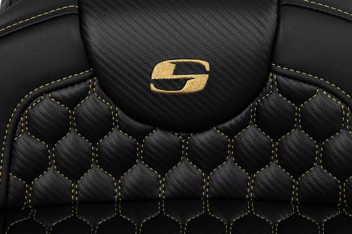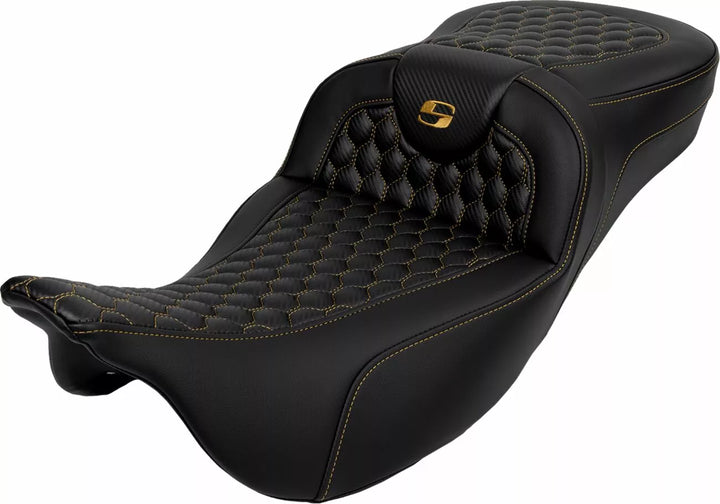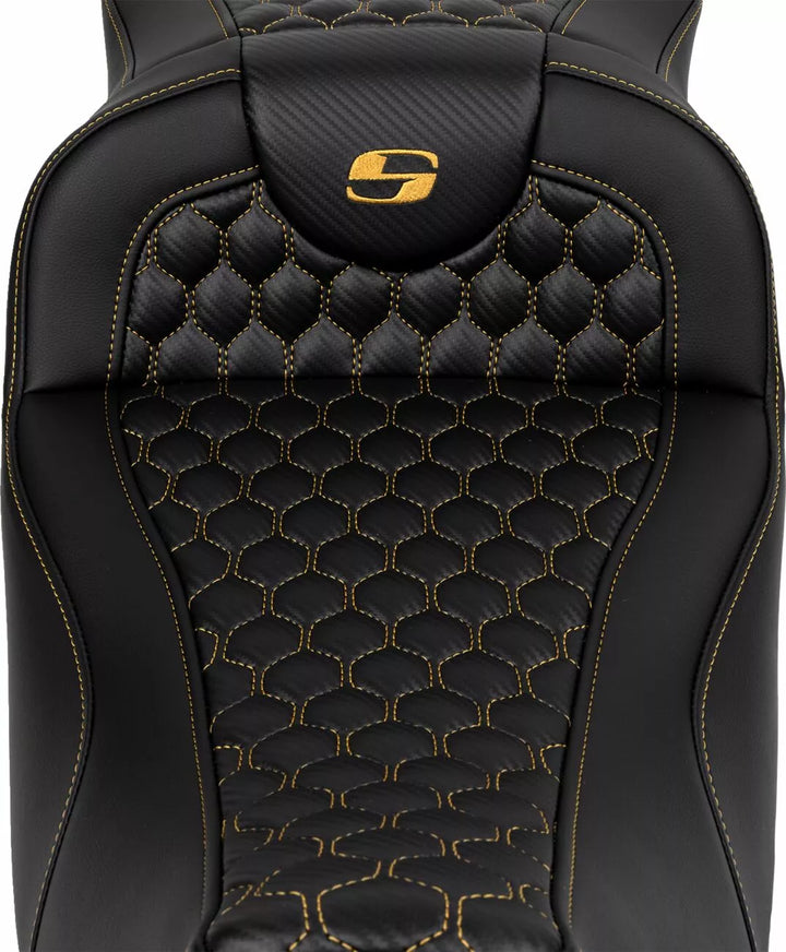 Each Seat Combines a Gel-Core ル Interior and Pro-Foam ル To Create A Foam With A Balance of Compression and Resilience Gear Long Distance Comfort, Pro-Foam ル Unique Molding Process Creates, See Elevae Resistant, Self- Durability as well as Comfort, Honeycomb (HC) Pattern Incorporates Modern Geometry In A Stylish Seat Cover, Saddlegel ル In Front and Real Reduces Tailbone Pressure and Increases Circulation and Comfort for Both Driver y pasajero, diseñado y hecho en los EE. UU.