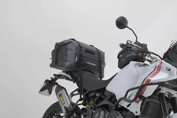 Welded Outer Pocket, Molle Adapter for Attaching Accessory Bags, Universal Fit for Almost All Motorcycles, Made of Sturdy 500D PVC, Waterproof, Extremely Durable Roll, Waterproof, Extremely Durable Handle Lugage Rolla Waterproof Roll Closure and Taped Seams, Reflective Details For Increased Safety On The Road, 1 x Drybag 350 Tail Bag, 4 x Loop Straps, 1 x Adhesive Protective Foil, Mounting Instructions, Size: 58.0 x 28.0 x 28.0 cm / 22.0 cm / 22