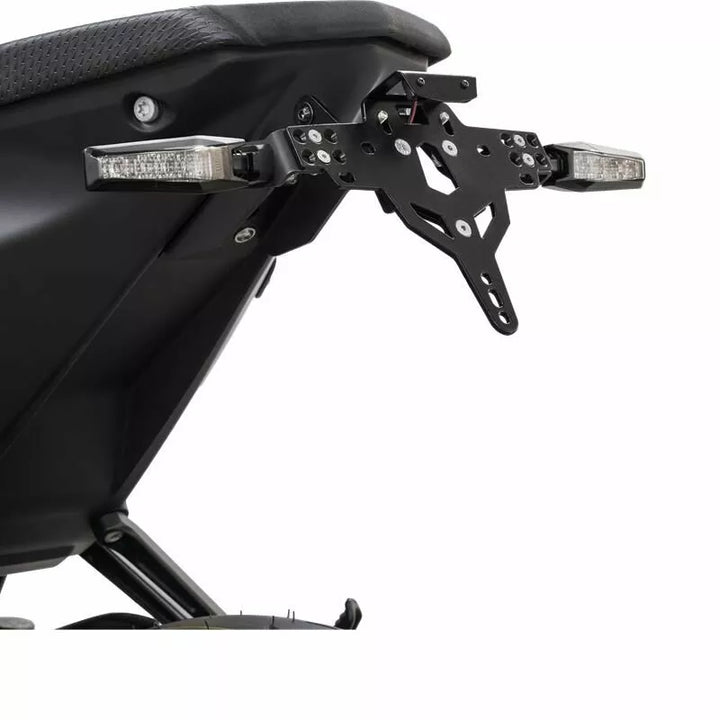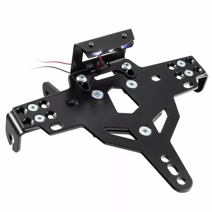 El soporte de la matrícula es extremadamente duradero y a prueba de la intemperie., Polvo negro recubierto. , El soporte de la placa se puede usar para cualquier tipo de placa (ancho de 175 mm)., No se requiere modificación del carenado., Ajuste sin paso del ángulo de rastrillo., Soporte del indicador ajustable en 3 posiciones. Placa., Montajes de luz indicadores especiales (vendidos por separado) requeridos para las luces indicadoras de stock. El kit incluye: 1 soporte de matrícula incl. Kit de montaje, luz de matrícula LED "E aprobado" incl. Apoyo. De: Suiza, Polonia e Irlanda.