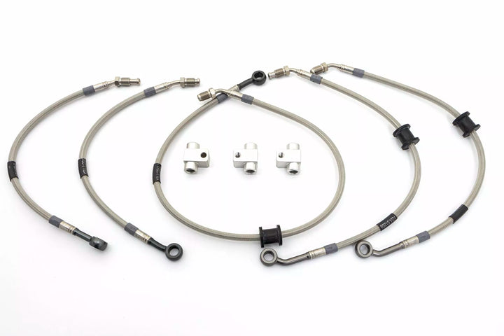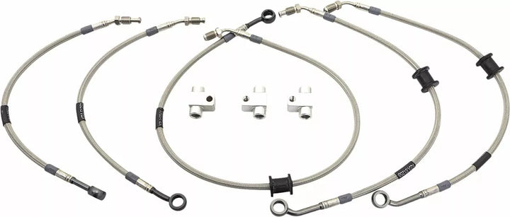 Mejora significativa de la respuesta de frenado., Punto de frenado estable, sin extensión del Hosen a temperaturas más altas. Las líneas de freno trenzadas de acero de motocicleta TRW son adecuadas para todos los sistemas de frenos ABS y duales combinados, incluso para los modelos de moto más recientes. FMVSS estándar de seguridad del vehículo 106., Las mangueras de freno trenzadas de acero de motocicleta TRW vienen con cubierta transparente y accesorios de aluminio en color de titanio como estándar. Las cubiertas y accesorios también están disponibles en muchos colores diferentes, características y diseño individual.