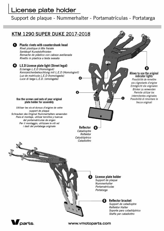 V Piezas Soporte de matrícula Black KTM 1290 Super Duke R C8-PM006