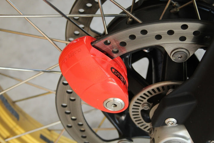 Bloqueo de freno de disco certificado por SRA/ART con una poderosa alarma de 120 dB