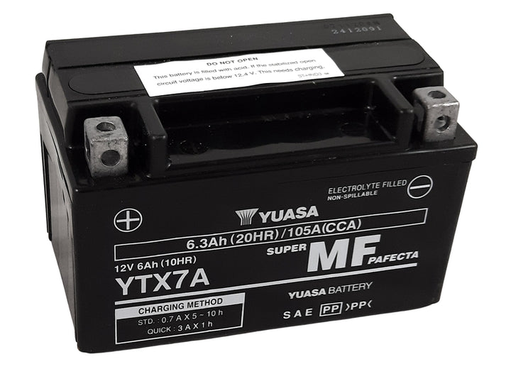Yuasa YTX7A-FA es uno Batería AGM de alto rendimiento, Factory activada y lista para ser utilizada directamente. Que es perfecto para motocicletas, scooters, quads y otros vehículos que requiere Poder de inicio confiable, larga vida útil y mantenimiento mínimo.