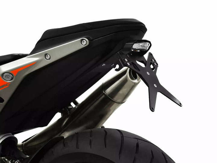 El soporte de la matrícula es extremadamente duradero y a prueba de la intemperie., Polvo negro recubierto. , El soporte de la placa se puede usar para cualquier tipo de placa (ancho de 175 mm)., No se requiere modificación del carenado., Ajuste sin paso del ángulo de rastrillo., Soporte del indicador ajustable en 3 posiciones. Placa., Montajes de luz indicadores especiales (vendidos por separado) requeridos para las luces indicadoras de stock. El kit incluye: 1 soporte de matrícula incl. Kit de montaje, luz de matrícula LED "E aprobado" incl. Soporte, luz de fondo con soporte. Descargo de responsabilidad: IMPORTANTE: Para el uso de este titular de la placa con las señales de giro OEM de los modelos Ducati (2015 - presente) Se necesita un titular especial (adaptador de señal de giro Zieger OE DUC. Partes Europa Número de pieza: 20301971. Número de proveedor: 10005790).