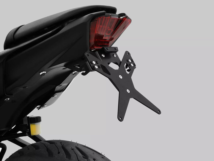 El soporte de la matrícula es extremadamente duradero y a prueba de la intemperie., Polvo negro recubierto. , El soporte de la placa se puede usar para cualquier tipo de placa (ancho de 175 mm)., No se requiere modificación del carenado., Ajuste sin paso del ángulo de rastrillo., Soporte del indicador ajustable en 3 posiciones. Placa., Montajes de luz indicadores especiales (vendidos por separado) requeridos para las luces indicadoras de stock. El kit incluye: 1 soporte de matrícula incl. Kit de montaje, luz de matrícula LED "E aprobado" incl. Soporte, luz de fondo con soporte. Descargo de responsabilidad: IMPORTANTE: Para el uso de este titular de la placa con las señales de giro OEM de los modelos Ducati (2015 - presente) se necesita un titular especial (adaptador de señal de giro Zieger y DUC. Partes Europa Número de pieza: 20301971. Número de proveedor: 10005790).