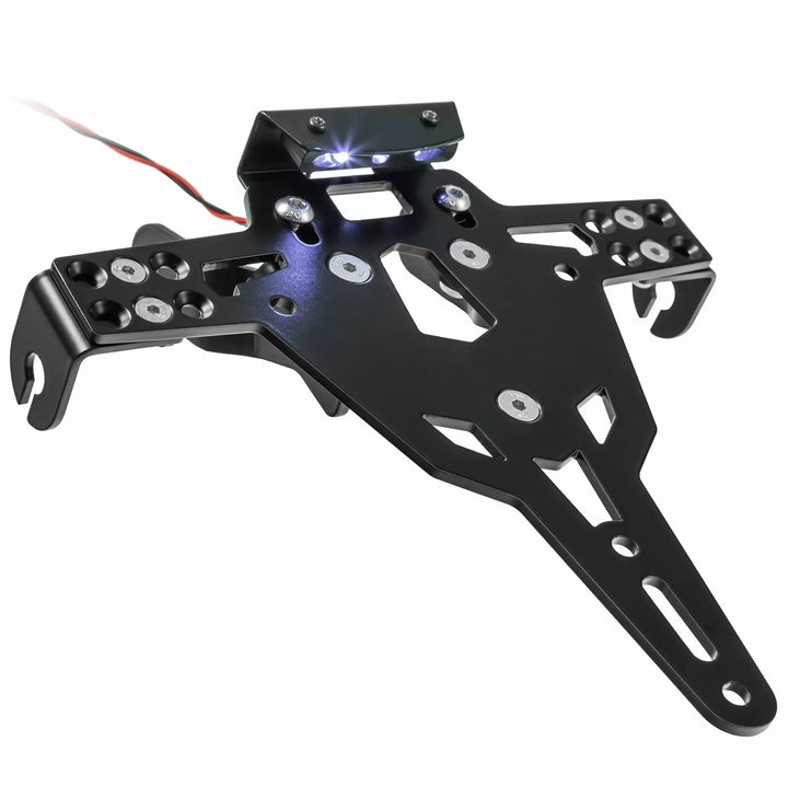 El soporte de la matrícula es extremadamente duradero y a prueba de la intemperie., Polvo negro recubierto. , El soporte de la placa se puede usar para cualquier tipo de placa (ancho de 175 mm)., No se requiere modificación del carenado., Ajuste sin paso del ángulo de rastrillo., Soporte del indicador ajustable en 3 posiciones. Placa., Montajes de luz indicadores especiales (vendidos por separado) requeridos para las luces indicadoras de stock. El kit incluye: 1 soporte de matrícula incl. Kit de montaje, luz de matrícula LED "E Helged" incl. Soporte, luz de fondo con soporte. De: Alemania, Eslovenia, Croacia y Reino Unido.