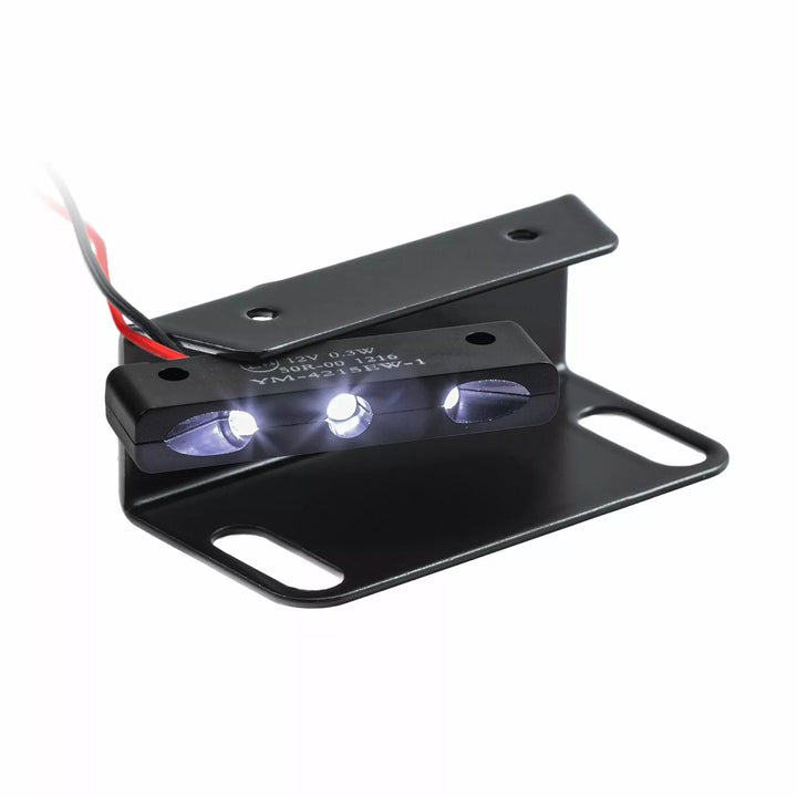 El soporte de la matrícula es extremadamente duradero y a prueba de la intemperie., Polvo negro recubierto. , El soporte de la placa se puede usar para cualquier tipo de placa (ancho de 175 mm)., No se requiere modificación del carenado., Ajuste sin paso del ángulo de rastrillo., Soporte del indicador ajustable en 3 posiciones. Placa., Montajes de luz indicadores especiales (vendidos por separado) requeridos para las luces indicadoras de stock. El kit incluye: 1 soporte de matrícula incl. Kit de montaje, luz de matrícula LED "E aprobado" incl. Soporte, luz de fondo con soporte. Descargo de responsabilidad: IMPORTANTE: Para el uso de este titular de la placa con las señales de giro OEM de los modelos Ducati (2015 - presente) se necesita un titular especial (adaptador de señal de giro Zieger y DUC. Partes Europa Número de pieza: 20301971. Número de proveedor: 10005790).