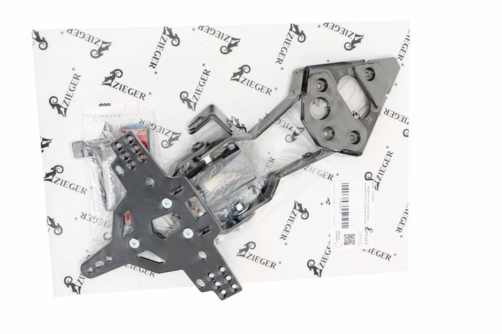 El soporte de la matrícula es extremadamente duradero y a prueba de la intemperie., Polvo negro recubierto. , El soporte de la placa se puede usar para cualquier tipo de placa (ancho de 175 mm)., No se requiere modificación del carenado., Ajuste sin paso del ángulo de rastrillo., Soporte del indicador ajustable en 3 posiciones. Placa., Montajes de luz indicadores especiales (vendidos por separado) requeridos para las luces indicadoras de stock. El kit incluye: 1 soporte de matrícula incl. Kit de montaje, luz de matrícula LED "E aprobado" incl. Apoyo. De: Suiza, Polonia e Irlanda.